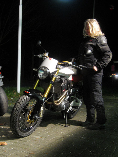 The riding position is just a bit less upright than on a BMW R1200GS. That position is very comfortable at the speeds that the Mulhacen likes (90 km/h and more). It is a perfect position to control the bike, both with your knees and hands.