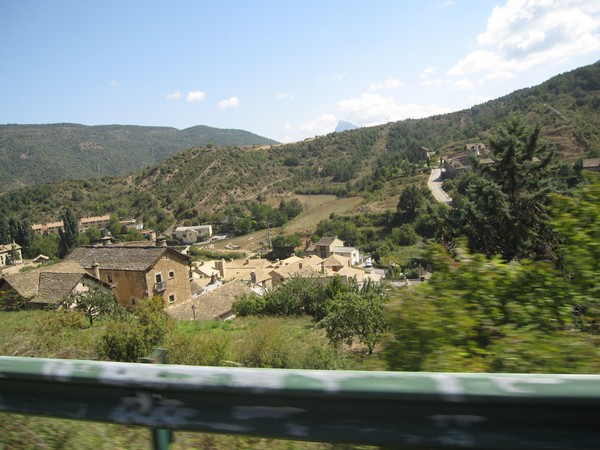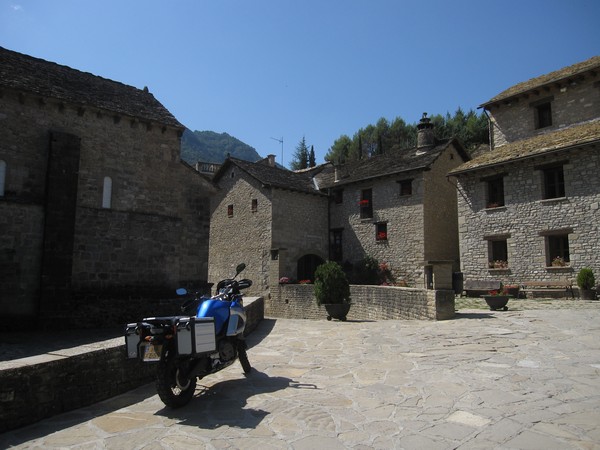 Dan nemen we de motor naar Santa Cruz de la Seros. De weg er naar toe is prachtig, grandioze uitzichten over de Pyreneeën, en steeds zie je Gieren.