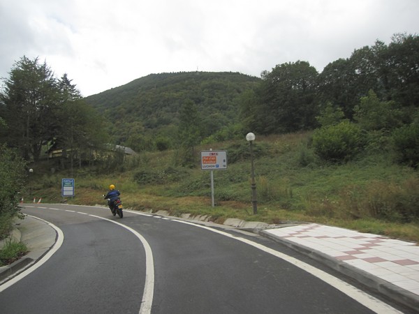 In Ore slaat hij linksaf, en dan komen we door een wirwar van straatjes met haarspelden die andere straatjes kruisen, allemaal in 3D. Zo'n haarspeldstraatje moet je blind nemen, hopende dat er geen verkeer van rechts komt, want je kunt pas kijken op het moment dat je moet doorzetten of anders omvalt.