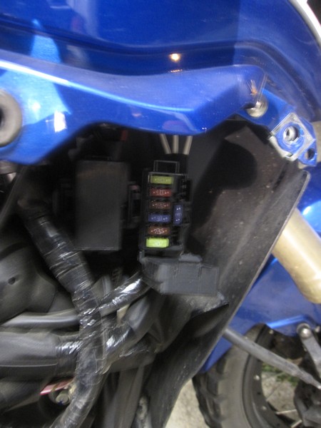 De SuperTenere heeft gelukkig een enorme voorraad reservezekeringetjes aan boord (die van de Tenere zijn nu op), maar Ernst moet nu eerst toch in datzelfde donker zien uit te vinden waar de oorzaak van de kortsluiting zit.