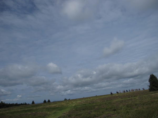 In de Vogezen zijn er, zeker rond deze tijd, altijd mensen voor de luchtige noot, zoals deze ruiters die in een streep over de heidevelden trekken.