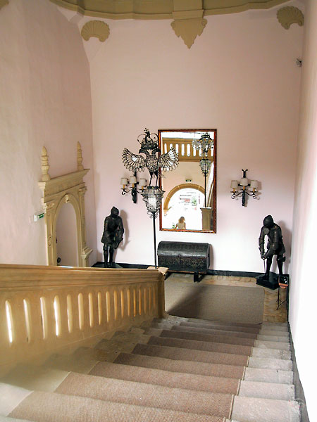 De kamers zijn aan gangen rond een binnenplaats, die naar boven toe open is. Die binnenplaats is voorzien van hele ranke zuilen die de rondgang daarboven ondersteunen.
