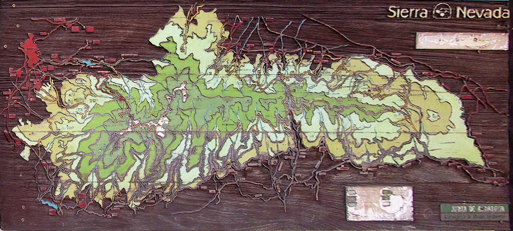 We volgen de weg een stukje, maar zien niets bijzonders. En als we een route naar het hostal lopen, om straks met de motor te kunnen kijken, stuiten we op trappen en onmogelijke hoeken in steile straatjes. Nou ja, dan maar de Sierra Nevada in.
