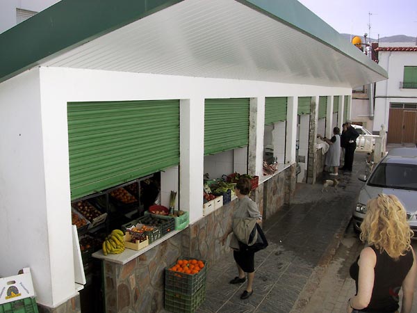 Dat voert door een stukje Laujar dat we nog helemaal niet hebben gezien, met een markt (kraampjes strak tegen de huizen in de straat aangeplakt): Laujar is groter dan we dachten.
