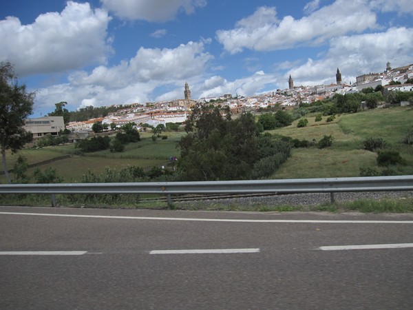 Leuk is het ook om langs Jabugo te rijden. We zien er niets van, maar het is de stad van de Jamon Iberico.