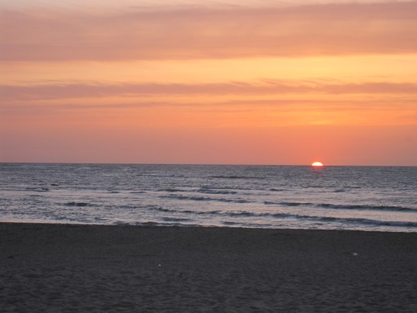 Langzamerhand raakt het strand verlaten. De zon staat al heel laag aan de horizon.