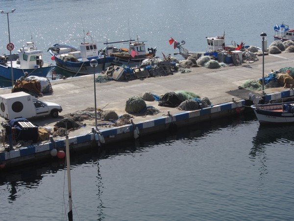 De vissershaven is prachtig om naar te kijken. De boten, de netten, en dan de mensen die de netten aan het repareren zijn of aan het overleggen.