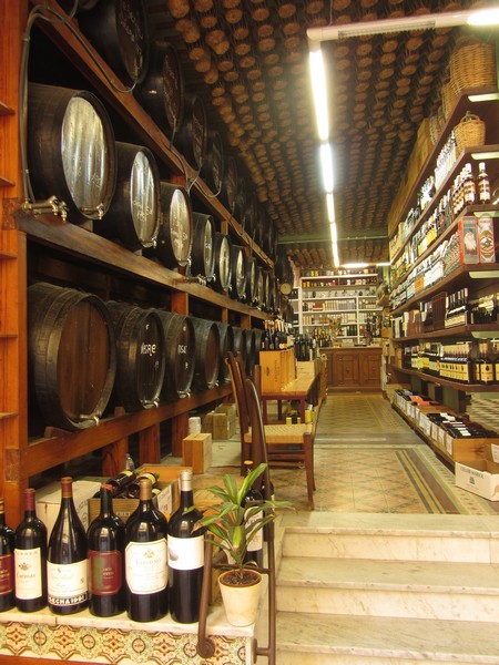Sommige winkels hebben een prachtig interieur. Hier kun je je wijnfles laten vullen met allerlei wijnen die in het vat in de winkel liggen.