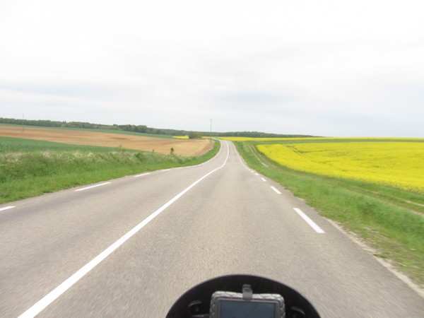 Die gele velden zijn in ieder geval een aangenaam gezicht (en het ruikt ook erg lekker) bij dit soort lange, vrij rechte wegen.