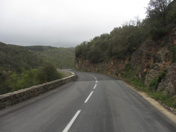 We rijden het land van de Katharen binnen, en de wegen worden steeds mooier, en tenslotte worden ze zelfs droog.
