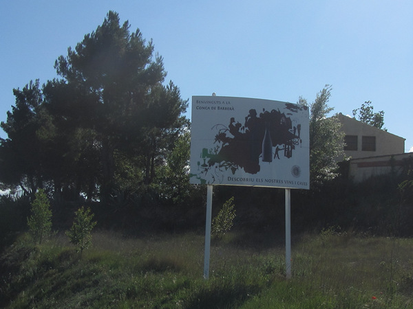 Een bord geeft aan dat we het wijngebied binnenrijden dat Conca de Barbera heet.
