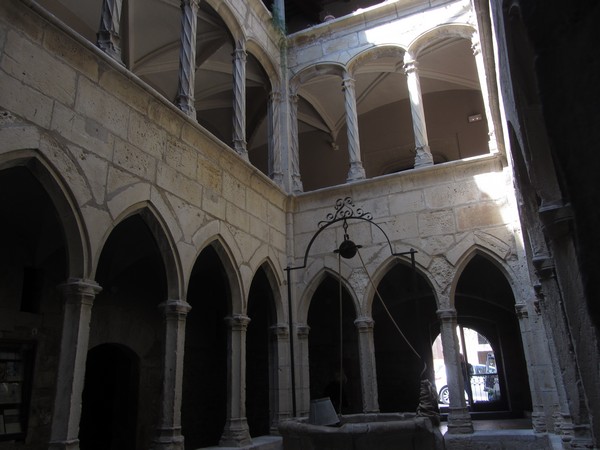 Het hospitaal is rond een patio gebouwd, die je hier ziet. Het gebouw is van de 15de en 16de eeuw: de patio is gotisch.