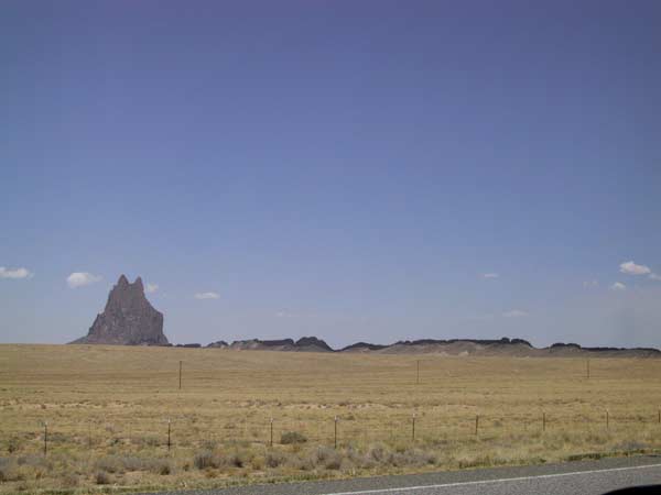 Shiprock is enorm. Foto's doen er eigenlijk nooit recht aan, ondat je door het vlakke landschap nooit kunt zien hoe ver weg de berg is. Hij ligt dus echt heel erg ver van de weg af .