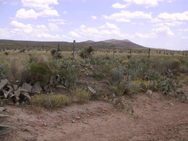 Via de Rio Penosco Road rijden we daarna de woestijn in, de Chihuahua Desert, en komen tenslotte terecht bij de grens met Mexico.