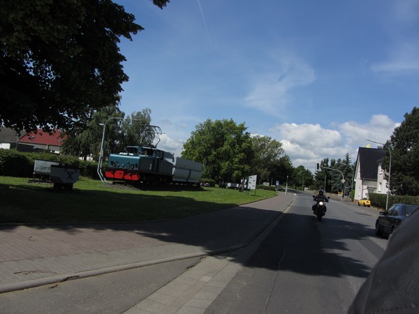In de outskirts van Gelnhausen worden we ook nog eens getracteerd op een muurschildering van een motor met zijspan.