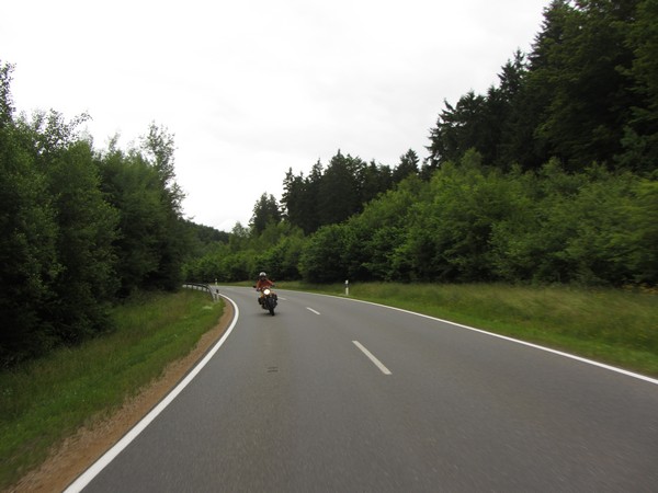 En dan zijn we Regensburg uit, en rijden we door een landschap met slingerende wegen en aangename bochten.