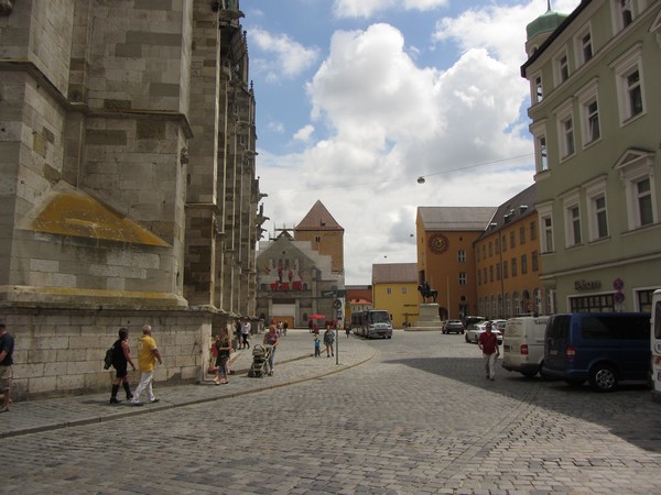 We zijn aangekomen op het plein bij de Dom van Regensburg.