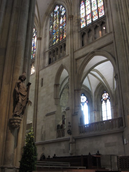 De dom is heel hoog en ruim, en heeft een ongelofelijke hoeveelheid gebrandschilderde ramen (ik bedenk me opeens dat ik niet weet of het nou glas-in-lood ramen zijn of gebrandschilderde of een combinatie daarvan).