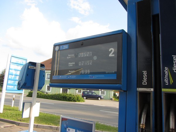 Maar zoals je ziet: we hebben precies op tijd een pomp gevonden. Ernst tikt bijna 22 liter af. Ik veel minder ;-)