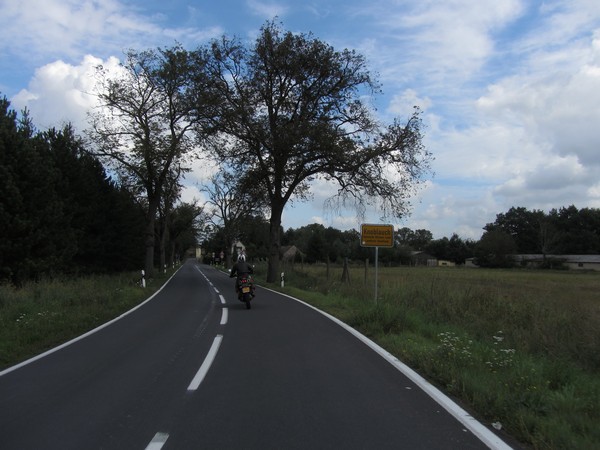In Neustadt heeft Ernst het voorrijden overgenomen, en de Becker wijst ons door Wusterhausen, en dan via een smal weggetje door Bantikow. Bantikow is een klein dorpje met veel grote mooie huizen, bijzonder welvarend. We rijden onder andere langs een luxe Schlosshotel.