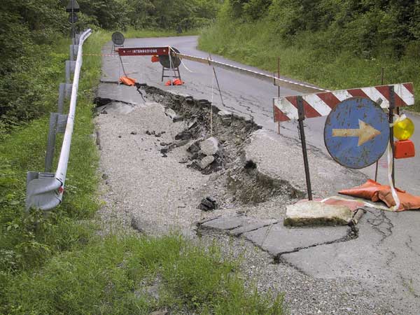 Het is hier heel erg mooi, want het bos wordt afgewisseld met open stukken, rotsachtig terrein. Wat heel absurd is, is dat de bergen hier ongelofelijk in beweging zijn: overal staan waarschuwingsborden dat het asfalt niet je dat is, en soms valt de weg zo twee meter naar beneden, en op veel plekken zijn er stukken uit de weg geslagen.