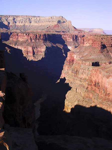 We merken helemaal niks van de andere tent, die een heel eind verder staat. Verder zijn we hier helemaal alleen, helemaal in het niets, met een paar meter verder die onmetelijke diepte van de Grand Canyon.
