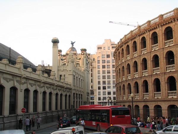 De Plaza de Toros ligt net buiten de oude binnenstad, tegenover het station, het Estacion del Norte, dat is gebouwd in 1917.