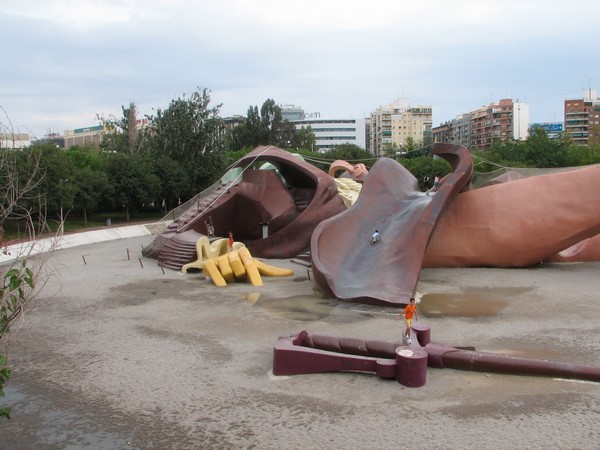 Dit beeld staat op een van de rotonde op de verkeersader op een van de oevers van de Turia (aan de andere kant van de oude stad).