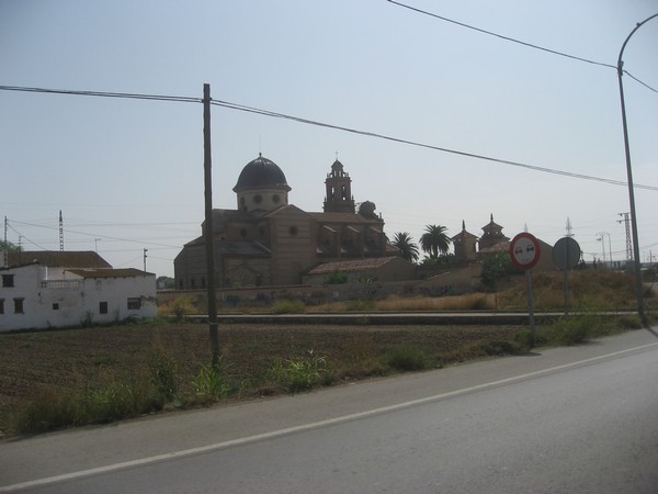 We rijden langs eindeloze sinaasappelboomgaarden, komen door een dorp, steken de snelweg over, en dan rijden we door Algemesi, een tamelijk fantasieloos stadje.