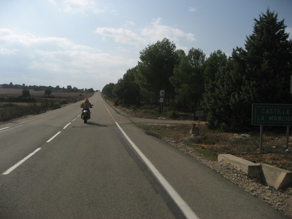 Hier, in de buurt van Alborea, kun je weer goed zien hoe vlak het landschap is geworden, en hoe kaarsrecht de weg.