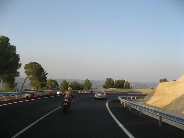 Ernst rijdt op een voor mij volkomen onbegrijpelijke wijze om en door Requena heen.