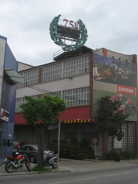 Ernst rijdt tot m'n stomme verbazing in één keer naar Derbi. Het is leuk om te zien dat heel veel werknemers hier op de motor komen. Er is er zelfs eentje bij die op een Mulhacen is!