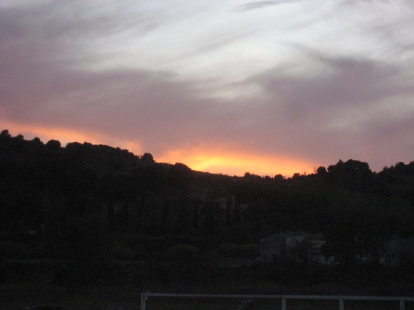 Als we weer verder rijden is de zon bezig onder te gaan.